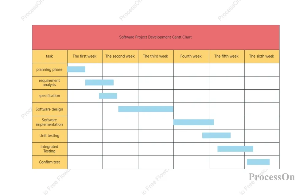 For software development teams, Gantt charts are a necessity. The ProcessOn template community offers a large number of Gantt chart templates for software projects, and now custom versions can be generated directly using AI.