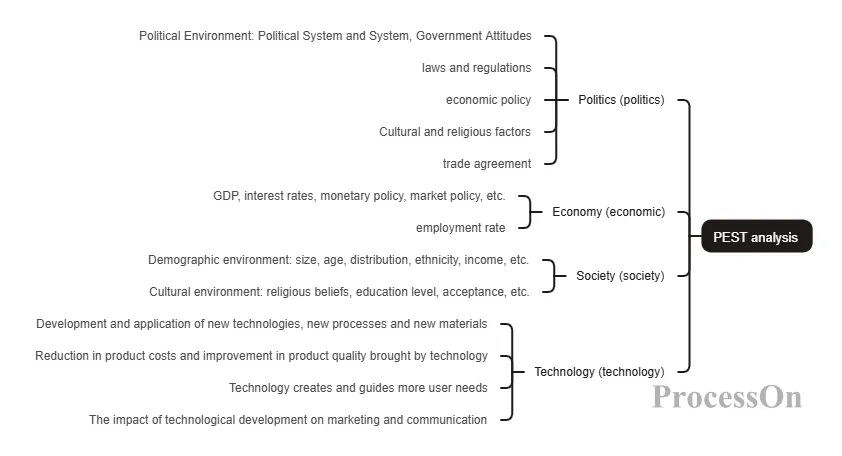 PEST analysis helps businesses scan the external environment from a macro perspective, identifying long-term trends and systemic risks. It is divided into four dimensions: Political, Economic, Social, and Technological. Some extended models also incorporate Legal and Environmental dimensions, but the core remains PEST.