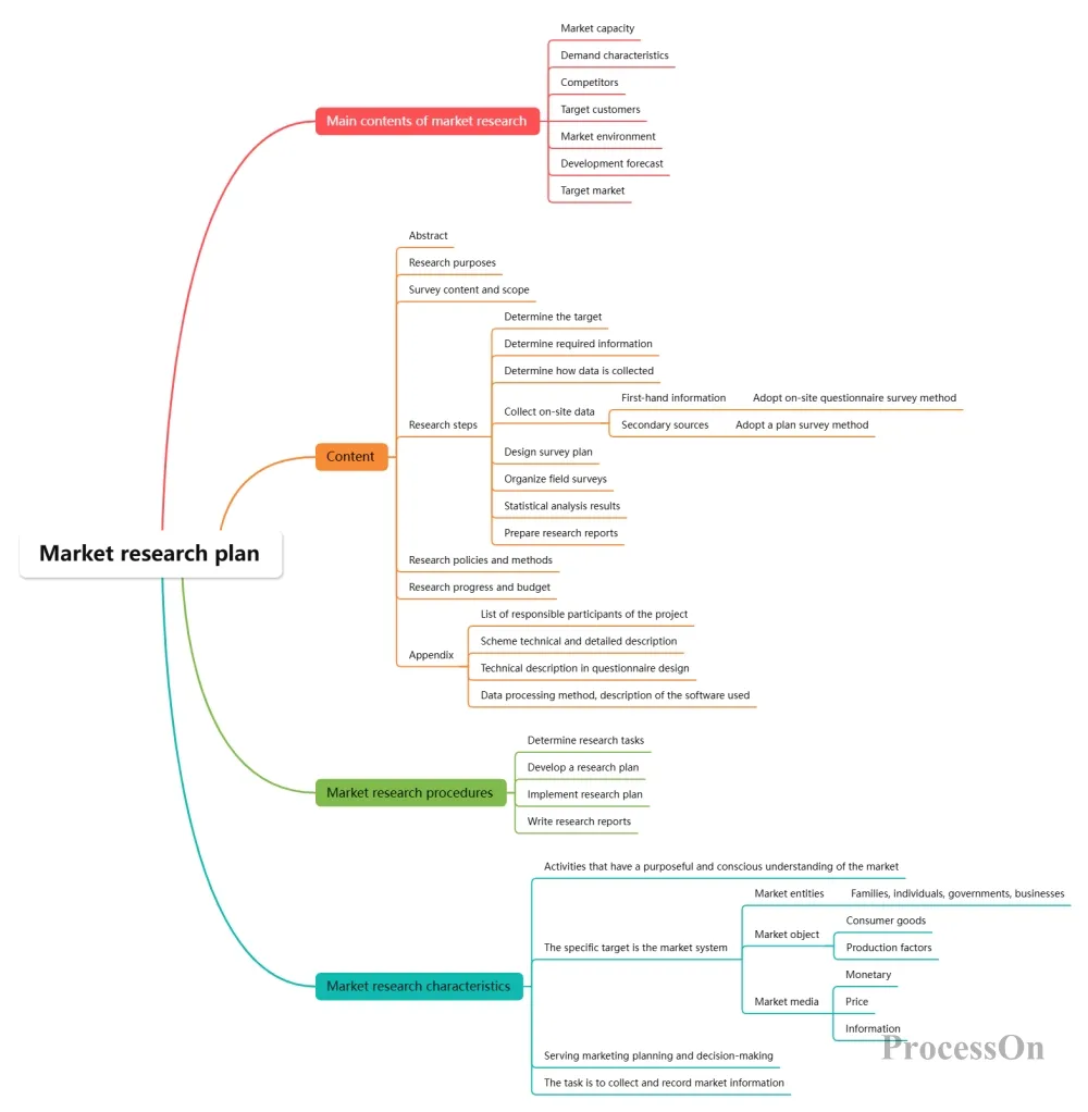 Market research involves numerous steps, methods, and documents, making it easy for teams to get lost in the details. At this point, a clear mind map or flowchart can act as a "navigator."