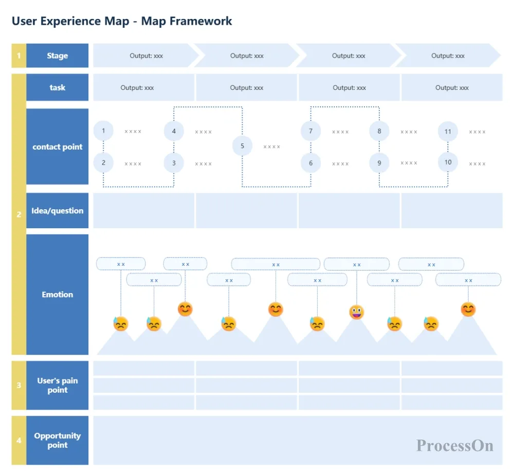 You can think of it as a "user experience map"—the horizontal axis represents time, and the vertical axis represents the user's actions, thoughts, and emotions. Through this map, the team can intuitively see: when, what, what, how, and what problems the user encountered.