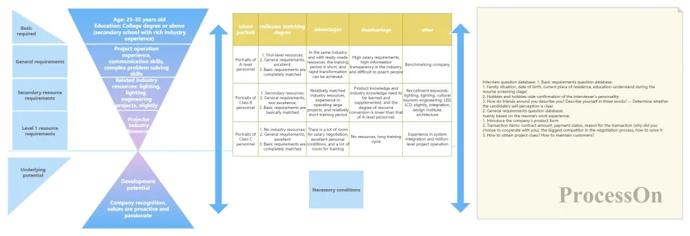 The flowchart template below fully demonstrates the entire competency assessment system, from personnel requirements to talent profile analysis and interview assessment, providing companies with a practical talent assessment solution.
