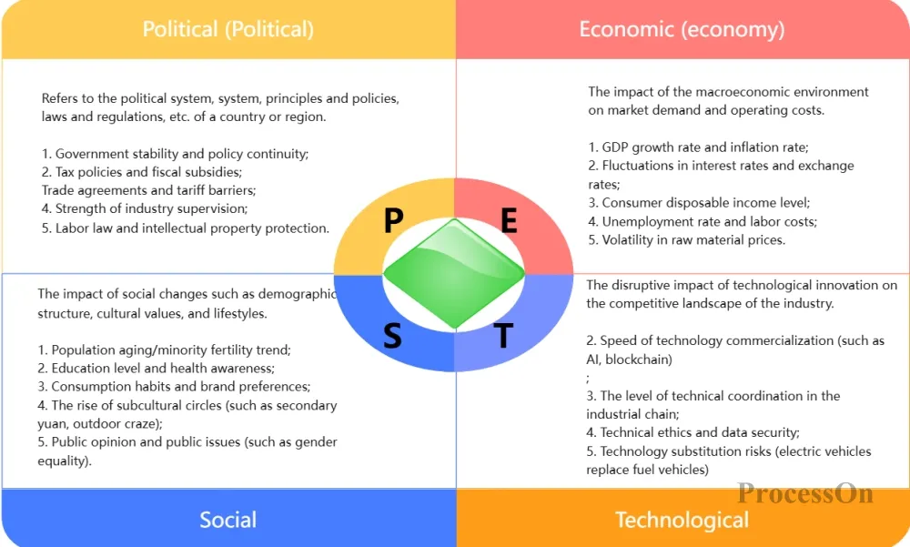 In strategic planning and market analysis, we often need to answer the following question: What kind of macro environment are we in? What external opportunities and threats exist? These questions are directly related to the survival of a company. The PEST model is the most classic tool for answering these questions.