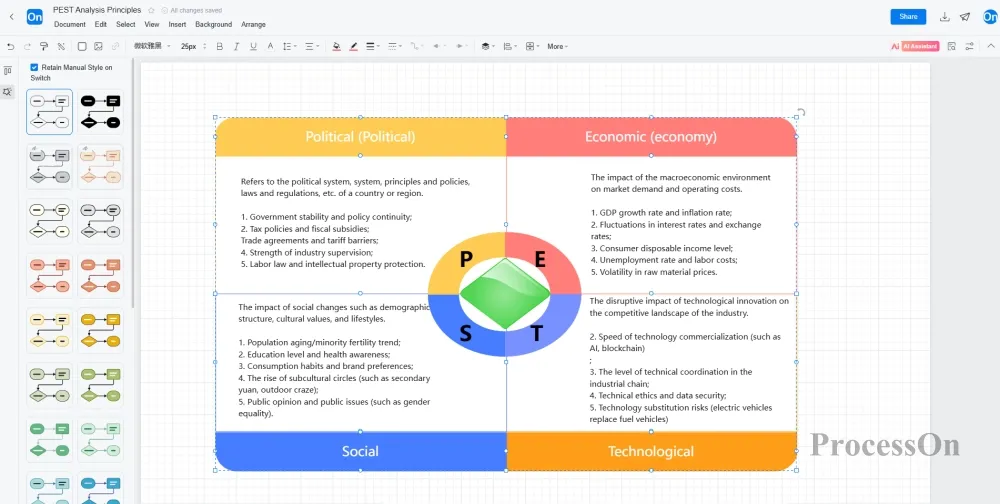 The ProcessOn template community has a large number of PEST model templates published by users, which can be used to learn from case studies or to use templates.