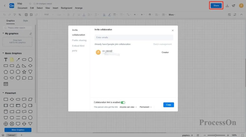 1. Open your ProcessOn profile page and create a new flowchart .