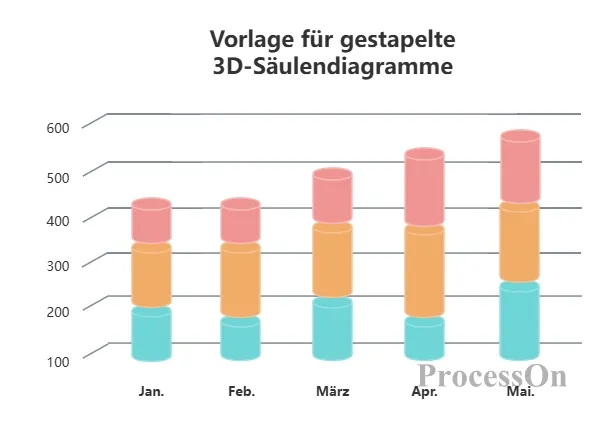 3D-gestapeltes Säulendiagramm: Dem 2D-gestapelten Säulendiagramm wird ein 3D-Effekt hinzugefügt, wodurch das Diagramm dreidimensionaler aussieht, die Lesbarkeit der Daten jedoch in gewissem Maße beeinträchtigt werden kann. Es wird in einigen Szenarien verwendet, in denen visuelle Effekte hervorgehoben oder mehrdimensionale Daten angezeigt werden müssen.
