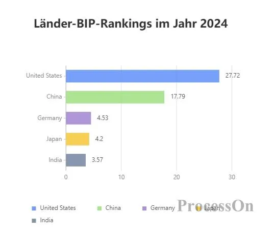 Balkendiagramm: hat Vorteile, wenn die Kategorienamen lang oder die Zahl groß ist. Horizontal angeordnete rechteckige Balken bieten Platz für längere Beschriftungen, vermeiden Beschriftungsüberlappungen und sorgen dafür, dass das Diagramm übersichtlicher und leichter lesbar ist. Wenn Sie beispielsweise BIP-Daten für verschiedene Länder vergleichen, können Beschriftungsinformationen in einem Balkendiagramm besser dargestellt werden, da die Ländernamen lang sind.