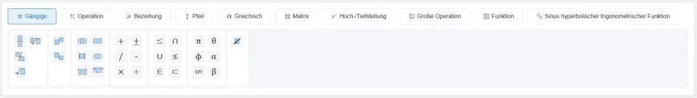Der Editor unterstützt vollständig gängige Mathematikumgebungen, wie beispielsweise: