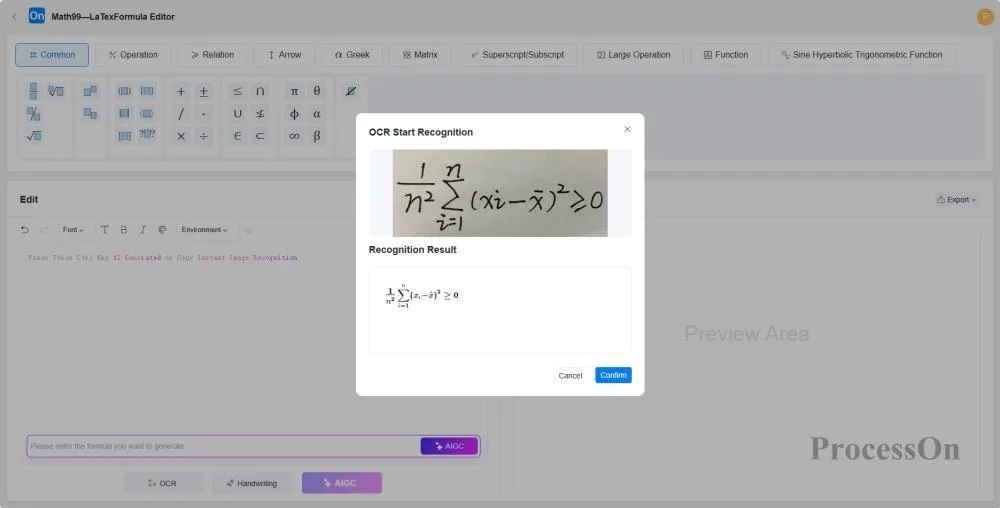 Mit der Entwicklung der Technologie und der wachsenden Nachfrage nach Online-Zusammenarbeit beginnen immer mehr Fachleute, Studenten und Pädagogen, LaTeX zum Schreiben mathematischer Formeln und technischer Dokumente zu verwenden. Als bekannte Plattform mit Schwerpunkt auf visuellen Diagrammen und Zusammenarbeit hat ProcessOn den leistungsstarken Math99 LaTeX-Formeleditor auf den Markt gebracht, der Benutzern eine effiziente, bequeme und unkomplizierte Lösung zur Eingabe und Anzeige mathematischer Formeln bietet.