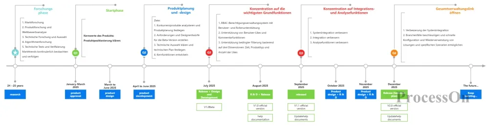 Eine Produkt-Roadmap ist kein einmaliges Dokument, sondern ein sich dynamisch entwickelndes strategisches Tool. Durch wissenschaftliche Planung und visuelle Darstellung hilft sie Teams, in komplexen Umgebungen die Orientierung zu behalten. Öffnen Sie jetzt [Name des Diagrammtools] und starten Sie Ihre Produktplanung mit unserer Roadmap-Vorlage – geben Sie Ihre Ziele ein und lassen Sie sich automatisch professionelle Diagramme erstellen, um Ihre Strategie effizienter umzusetzen!
