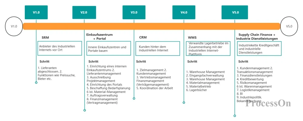 Gehen Sie zu ProcessOn , suchen Sie nach dem Schlüsselwort [Produkt-Roadmap], verwenden Sie die Vorlage und öffnen Sie anschließend den Flussdiagramm-Maker, um sie zu bearbeiten. Verbessern Sie die Zeitleiste, die Produktfunktionen , die Risikobeschreibung und andere Module.
