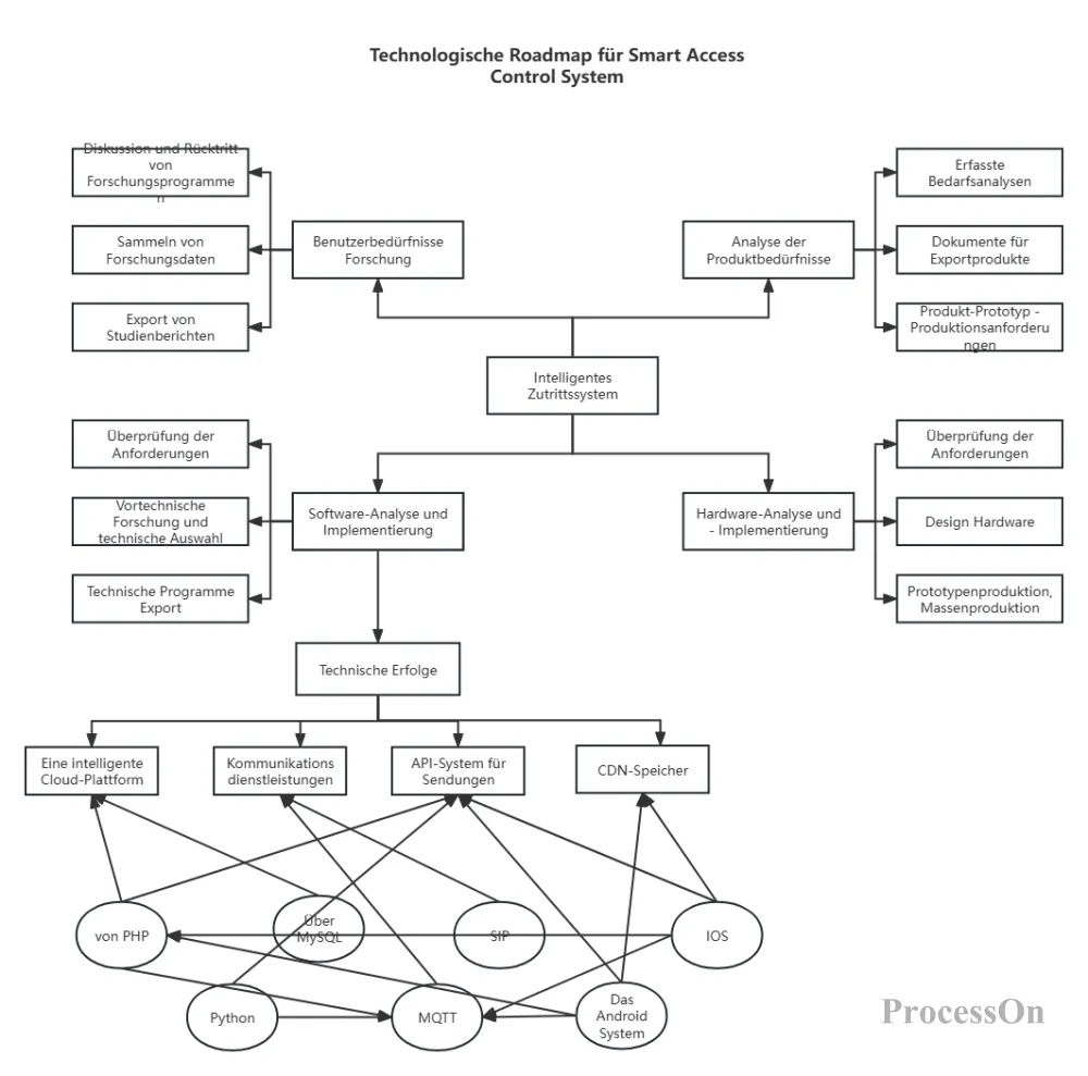 Dieser Fahrplan beschreibt anschaulich die Schritte der Softwareimplementierung für ein intelligentes Zutrittskontrollsystem , von der Bedarfsanalyse der Nutzer und der Analyse der Produktanforderungen bis hin zur finalen technischen Implementierung.