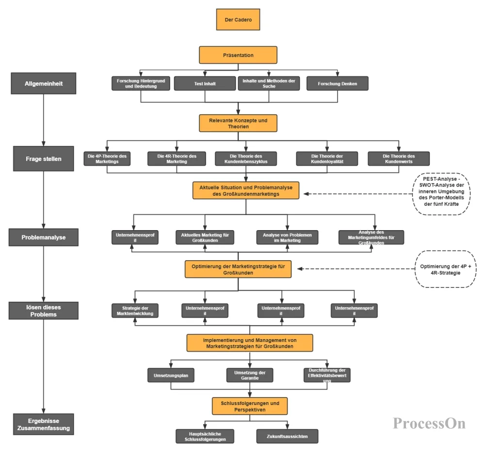 Durch eine Analyse des aktuellen Status und der Probleme des Key-Account-Marketings des Unternehmens wurden in der Roadmap wichtige Themen identifiziert und Hinweise zur Optimierung der Key-Account-Marketingstrategien gegeben .