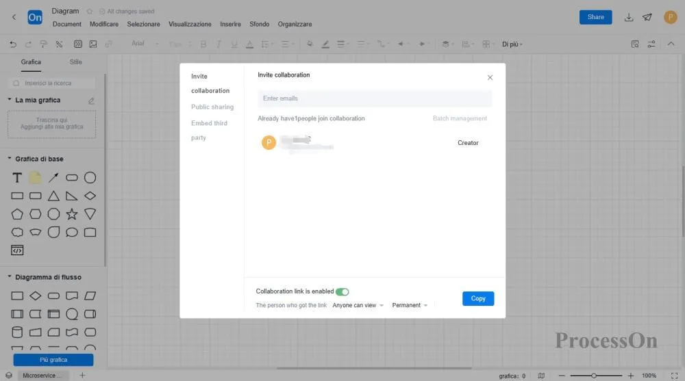 Strumento online: ProcessOn, che non richiede l'inserimento di dati e supporta il trascinamento diretto della grafica sulla tela . È adatto agli utenti senza conoscenze di programmazione.