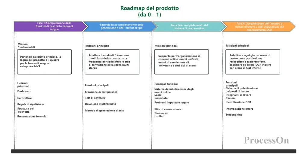 Definizione: Una roadmap di prodotto è un documento che illustra visivamente gli obiettivi strategici, le milestone chiave, le priorità delle funzionalità e le tempistiche di un prodotto. Come una "mappa strategica", traduce una visione astratta del prodotto in un piano attuabile e articolato in fasi.