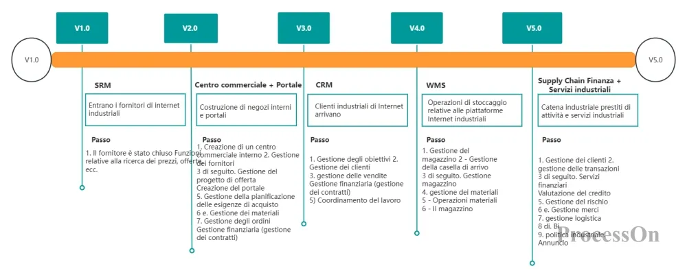 Vai su ProcessOn , cerca la parola chiave [roadmap del prodotto], usa il modello e poi accedi al generatore di diagrammi di flusso per modificarlo. Migliora la timeline, le caratteristiche del prodotto, la descrizione del rischio e altri moduli.