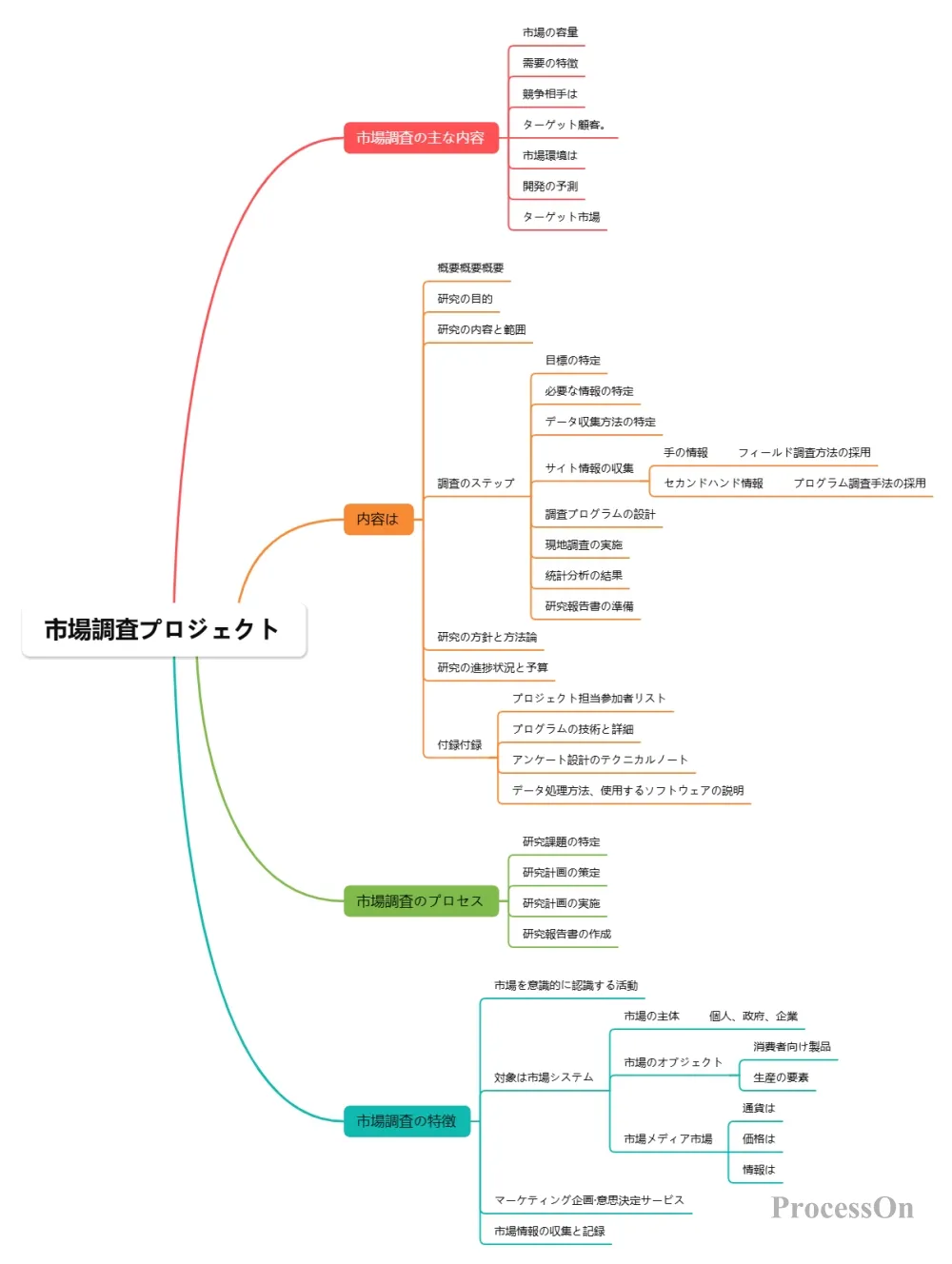 ProcessOnで、最初の市場調査マインドマップを今すぐ作成しましょう。視覚化を活用することで、すべての調査プロジェクトが目標指向的で論理的に構成され、具体的な成果をもたらすことを確認できます。