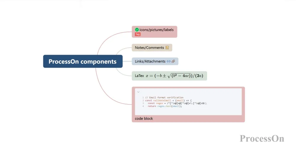 LaTeX 式とコード ブロック: 技術分野 (コンピューター サイエンス、数学、医学など) のマインド マップでは、LaTeX 式 (要素の下付き文字と上付き文字、数式など) またはコード ブロック (Python、Java、SQL などの複数の言語をサポート) の挿入をサポートします。
