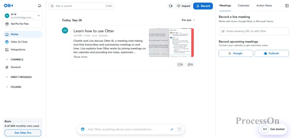 3.キーワード要約と要点: Otter.aiはテキストの書き起こしだけでなく、会話からキーワードをインテリジェントに抽出し、会議の要約を自動生成します。ユーザーは書き起こしプロセス中に手動で要点を追加できるため、会議後に核心部分を素早く簡単に確認できます。