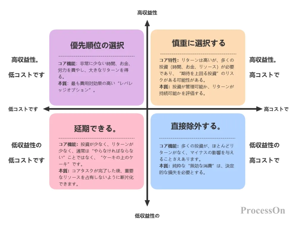 高収益+高コスト:効率を最適化するか、より安価な代替案を見つける。