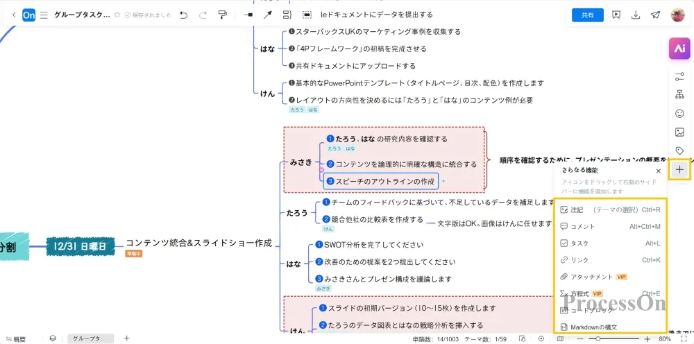 ProcessOnでは、グループはオンライン・思惟ガイドを使用して共同で編集できます。