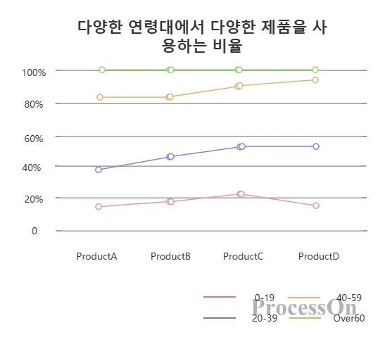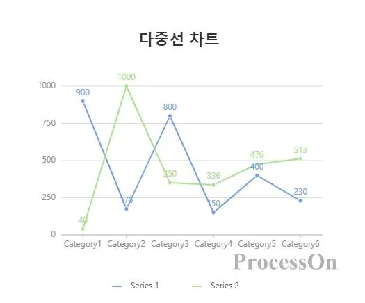 특징: 동일한 차트에 여러 개의 끊어진 선을 표시하여 다양한 데이터 세트의 변화 추세를 비교합니다.