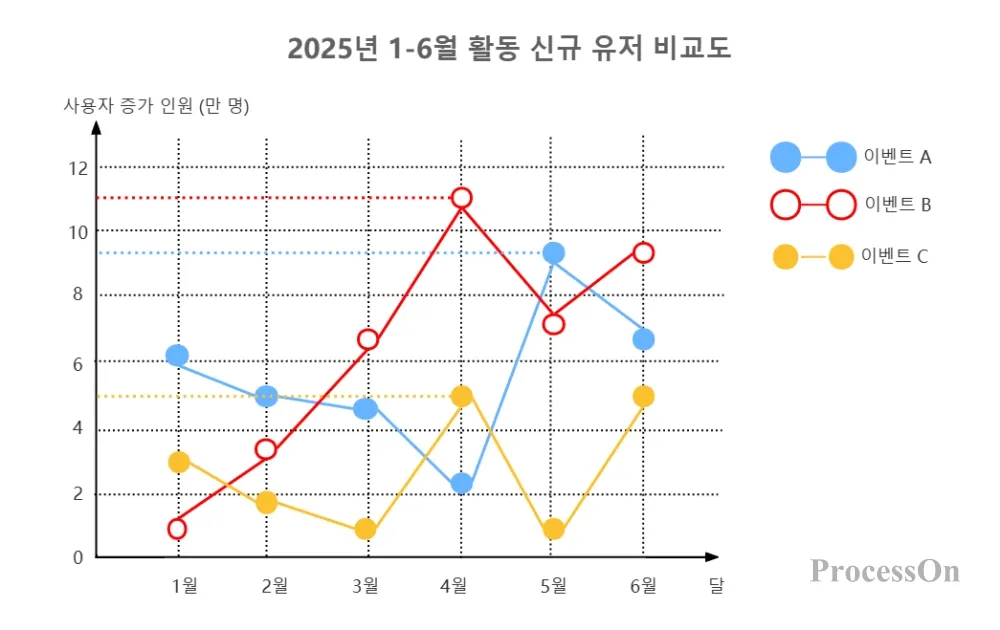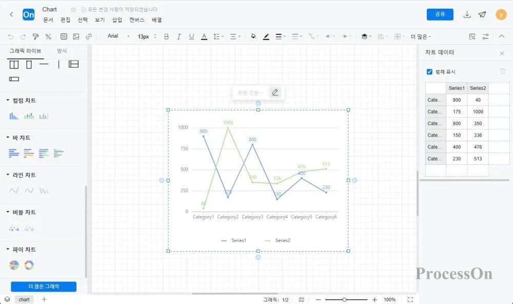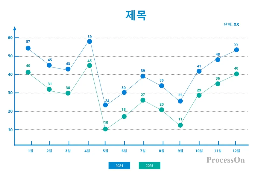 여러 시리즈 비교: 여러 데이터 시리즈의 변화 추세를 동시에 비교해야 할 때 선형 차트를 사용하면 시리즈 간의 차이점과 연결을 명확하게 보여줄 수 있습니다.