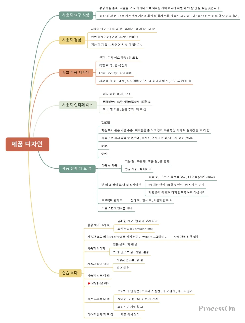 이 마인드맵은 사용자 요구사항, 사용자 경험 및 상호작용 디자인 관점에서 제품 디자인의 핵심 요소를 체계적으로 개략적으로 보여주므로 디자인 초기 단계에서 전체적인 프레임워크를 구축하는 데 적합합니다.