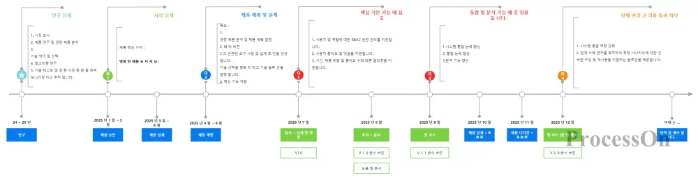 제품 반복, 중요한 시장 이벤트 또는 기술적 혁신 (예: 베타 릴리스, 공식 출시) 을 포함한 이정표