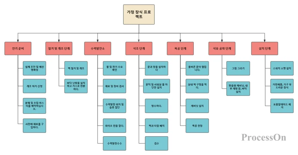 작업분해구조(WBS)를 작성하는 핵심은 계층적 관계와 포함 논리를 명확하게 나타내는 것입니다. 작성 방법은 다음과 같습니다 .
