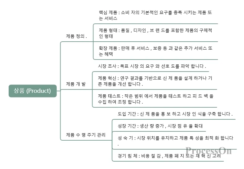 제품: 기업이 목표 시장에 제공하는 유형의 재화 또는 무형의 서비스.