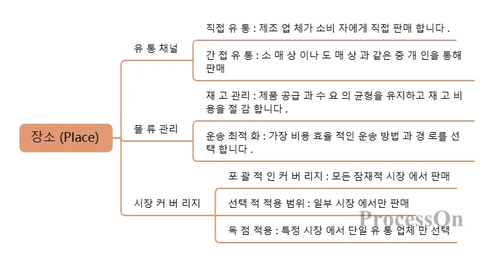 유통(채널): 제품이 생산자에서 소비자에게 도달하는 경로.