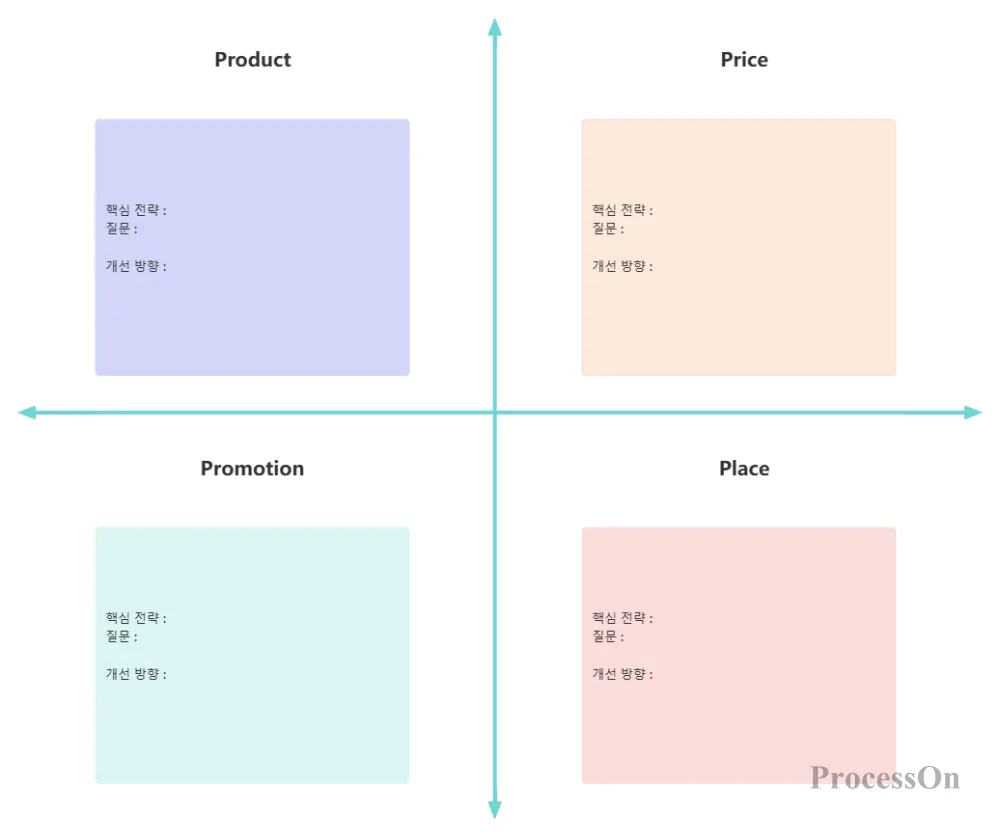 4P는 마케팅에서 가장 기본적이고 실용적인 분석 도구입니다. 복잡한 마케팅 활동을 제품, 가격, 유통(장소), 프로모션이라는 네 가지 핵심 요소로 요약해 줍니다. 스타트업이든 기존 브랜드든 관계없이 4P를 활용하여 현재 상황을 분석하고, 문제점을 파악하며, 전략을 개발할 수 있습니다.