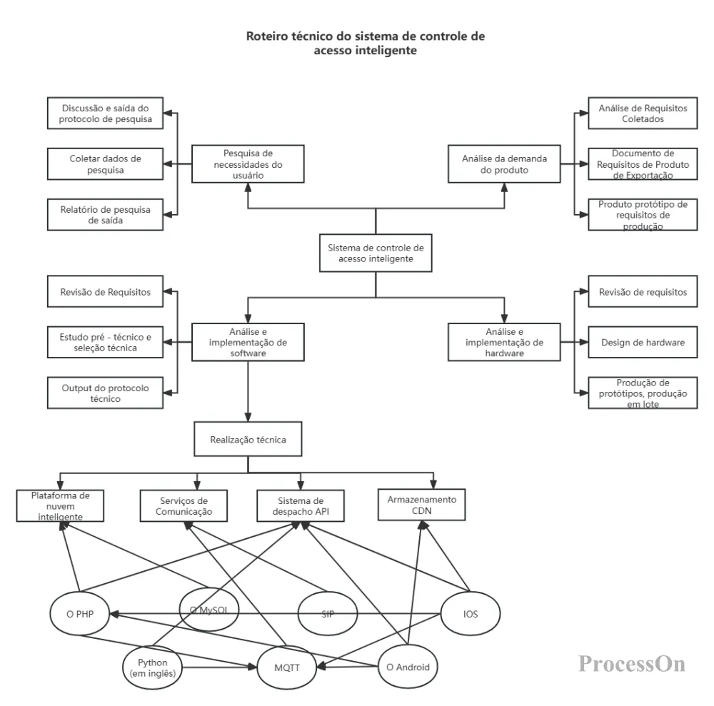 Este roteiro descreve claramente as etapas de implementação de software para um sistema inteligente de controle de acesso , desde a pesquisa das necessidades do usuário e a análise dos requisitos do produto até a implementação técnica final.