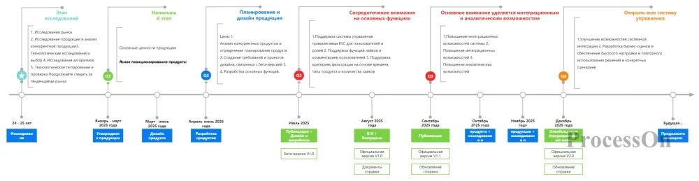 Важные этапы , включая итерации продукта, важные рыночные события или технологические прорывы (например, выпуск бета-версии, официальный запуск)