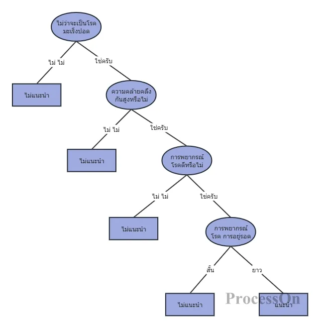 สุดท้าย ให้ระบุผลการตัดสินใจหรือเอาต์พุตบนโหนดใบแต่ละโหนด