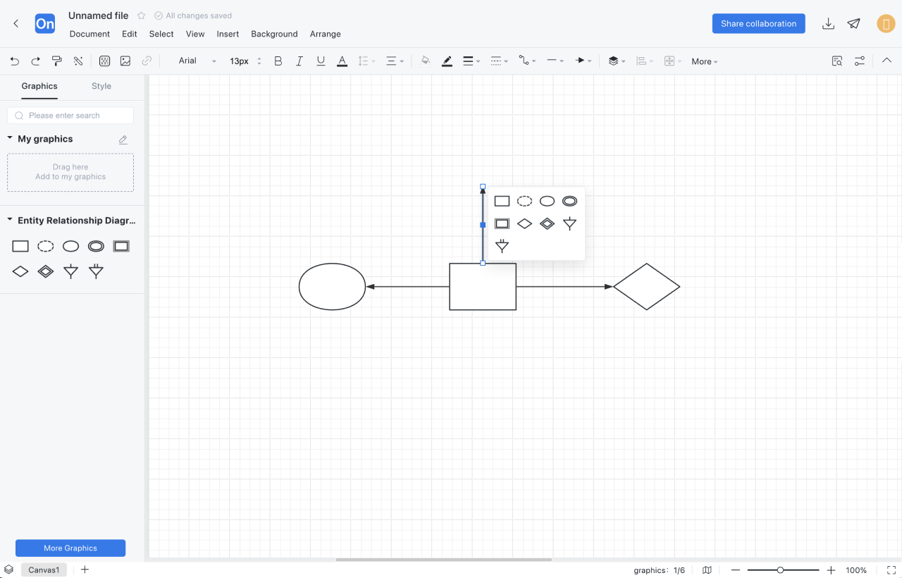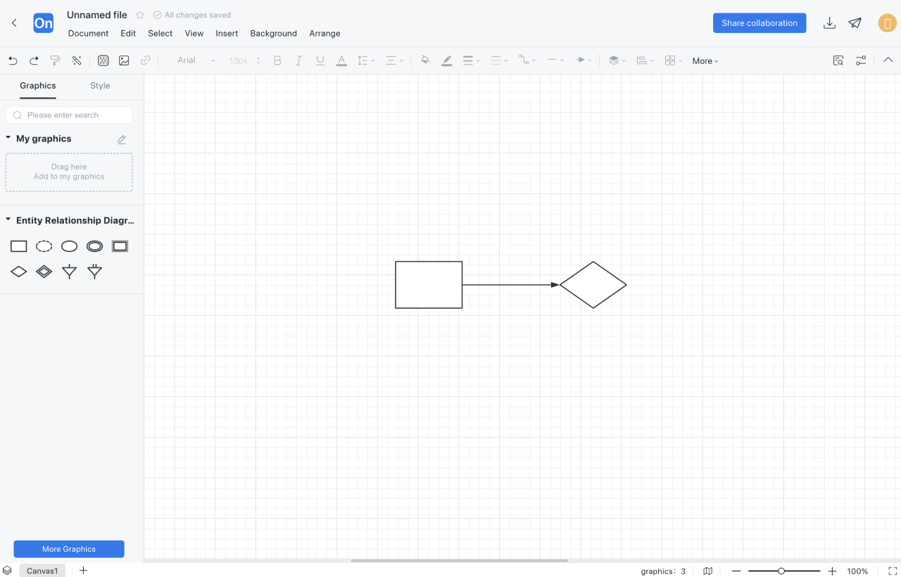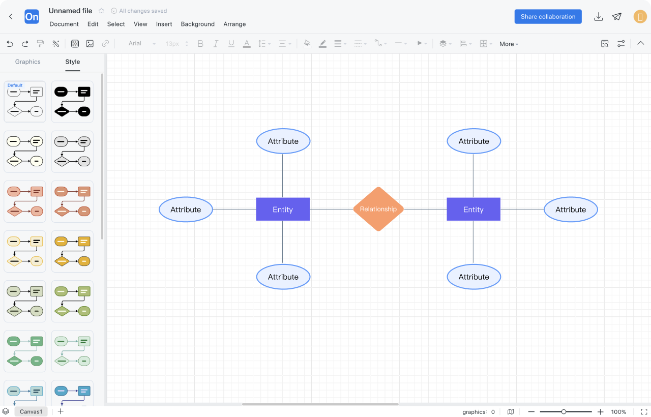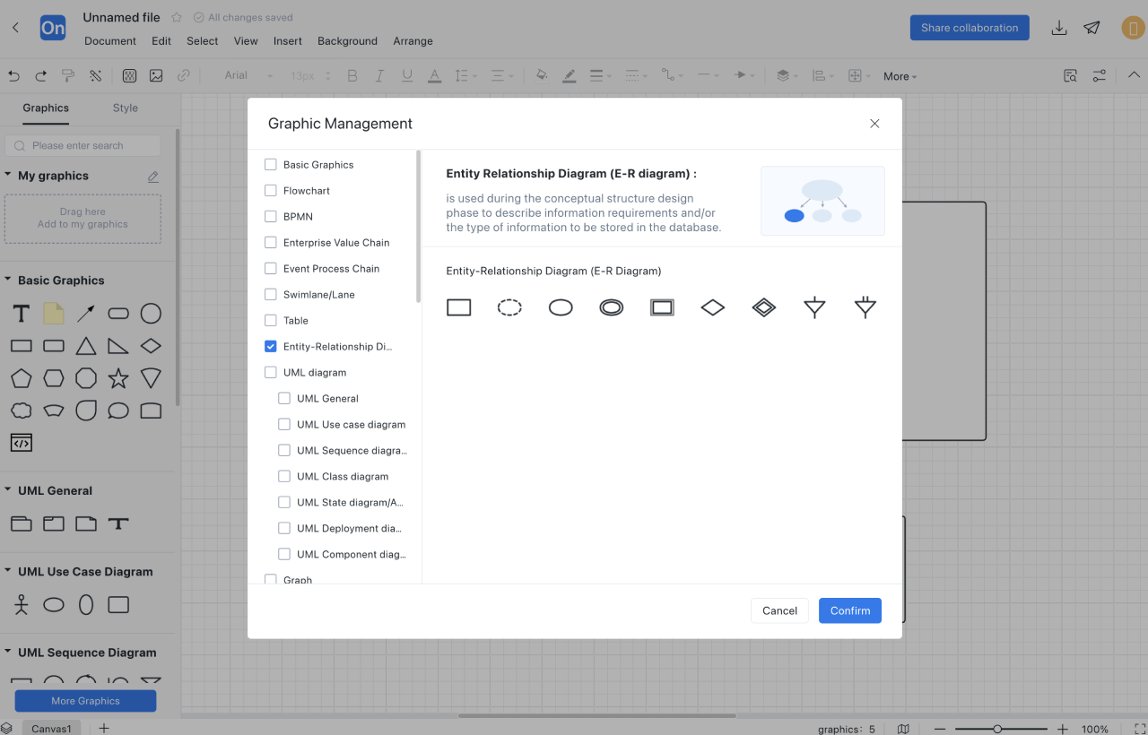 Gumawa ng bagong ER diagram, o gumawa muna ng bagong flowchart, pagkatapos ay idagdag ang 'ER diagram' na graphic na simbolo sa lugar ng pagguhit, o direktang i-clone ang inilabas na pampublikong template ng ER diagram