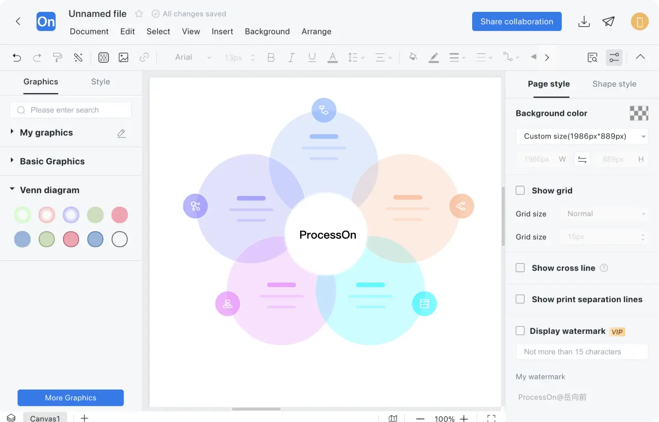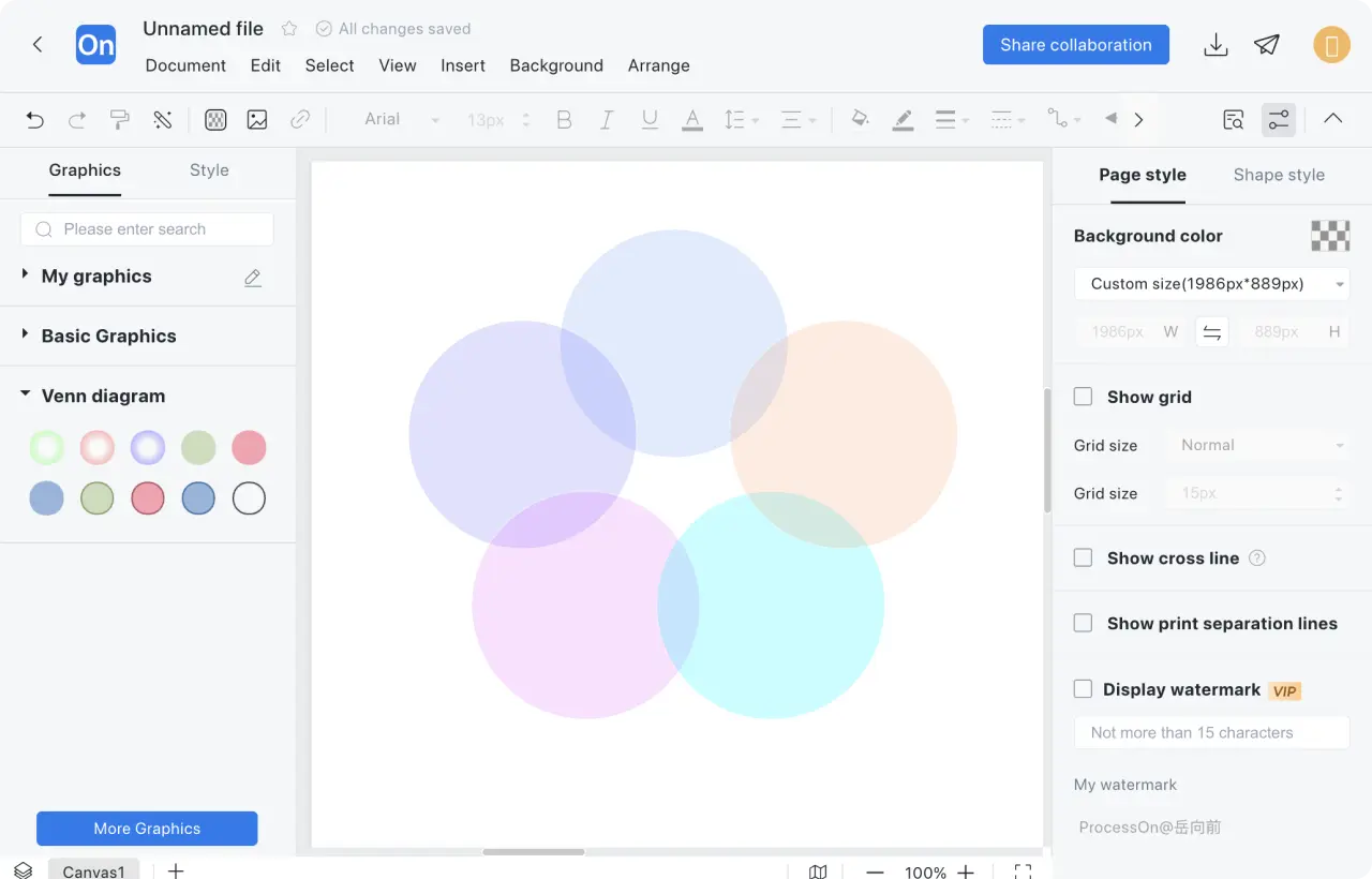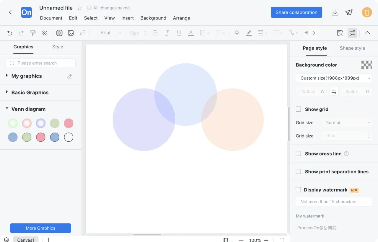 In this way, a professional Venn diagram is drawn. You can publish it to the ProcessOn template community or share it with your colleagues and friends.