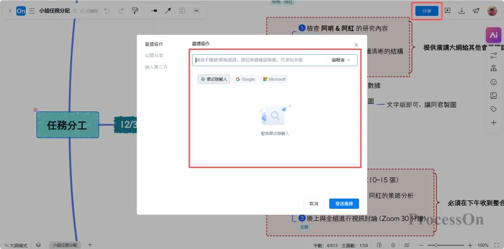 在ProcessOn 中,小組可以用線上心智圖共同編輯: