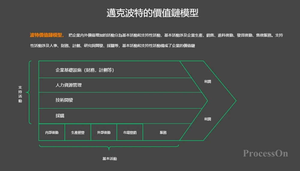 今天,我們就來深入解說波特價值鏈模型的核心內容,以及如何用它來建立企業競爭優勢。更重要的是,我們會告訴你如何用圖表工具(如ProcessOn)將價值鏈視覺化,讓團隊一目了然,讓策略落地有據可依。